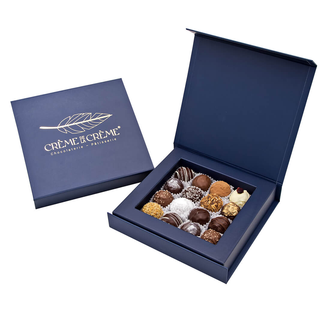 Chocolate originario de Bélgica. En su interior tienen una crema suave conocida como ganache. Por fuera está cubierta con una capa de chocolate. 16 trufas
